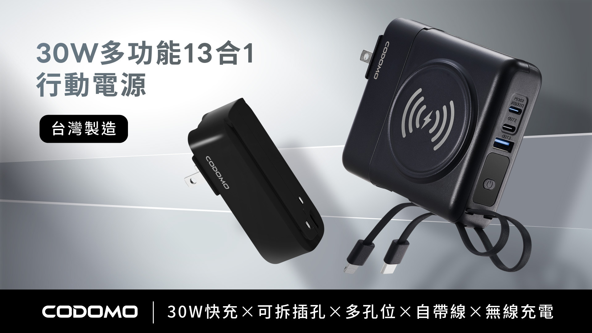 CODOMO |30W多功能可拆式13合1行動電源